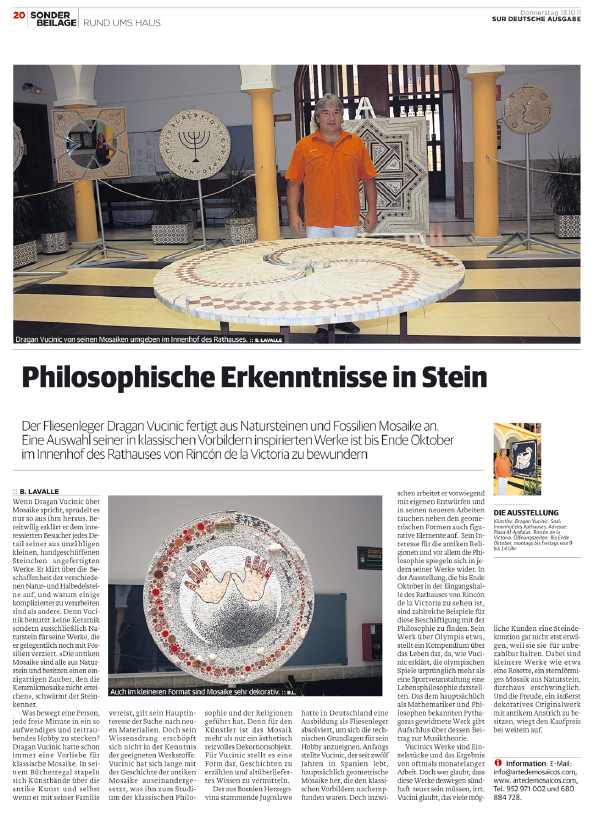Mehrere Werke sind bis 30. April 2011 im Rathaus von Torre del Mar (Provinz M laga) ausgestellt.